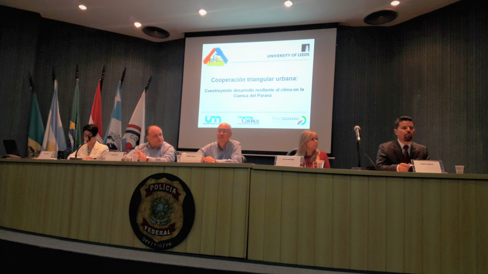 La triple frontera entre Paraguay, Argentina y Brasil es un ejemplo del 30% de la población de Sudamérica que se concentra, asimismo, en cuencas transfronterizas. De acuerdo con Sakai, son ciudades que comparten los mismos riesgos, situación que rara vez es abordada en planes nacionales de adaptación.