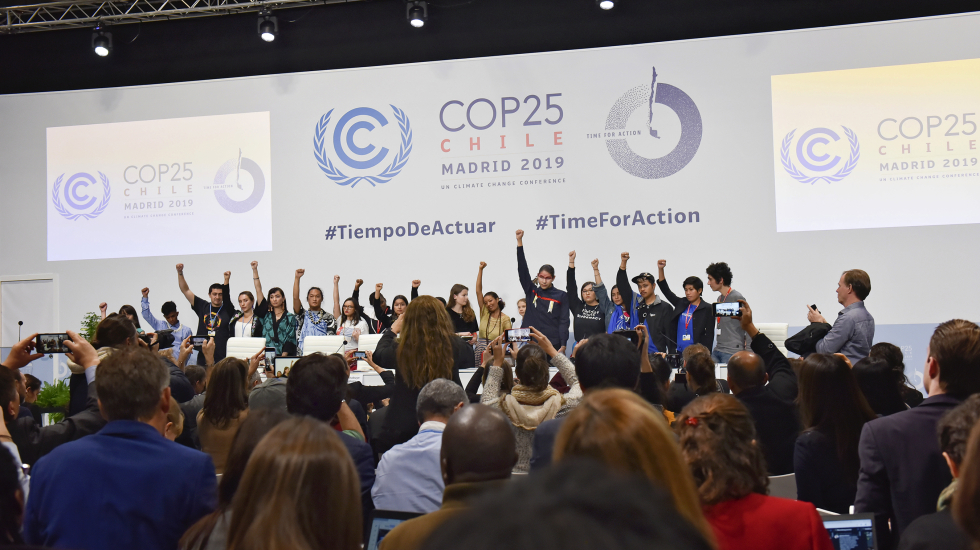Es de noche en el casi invierno europeo. Son las 7:55 de la mañana en Madrid y un grupo de jóvenes pasa raudo entre las somnolientas escaleras del enorme predio del IFEMA, donde se realiza la cumbre de cambio climático COP25 de la ONU (en Madrid, con presidencia de Chile), que hace que los casi treinta mil acreditados parezcan hormigas en un bosque. Son los jóvenes activistas climáticos que van por su primera reunión el día.