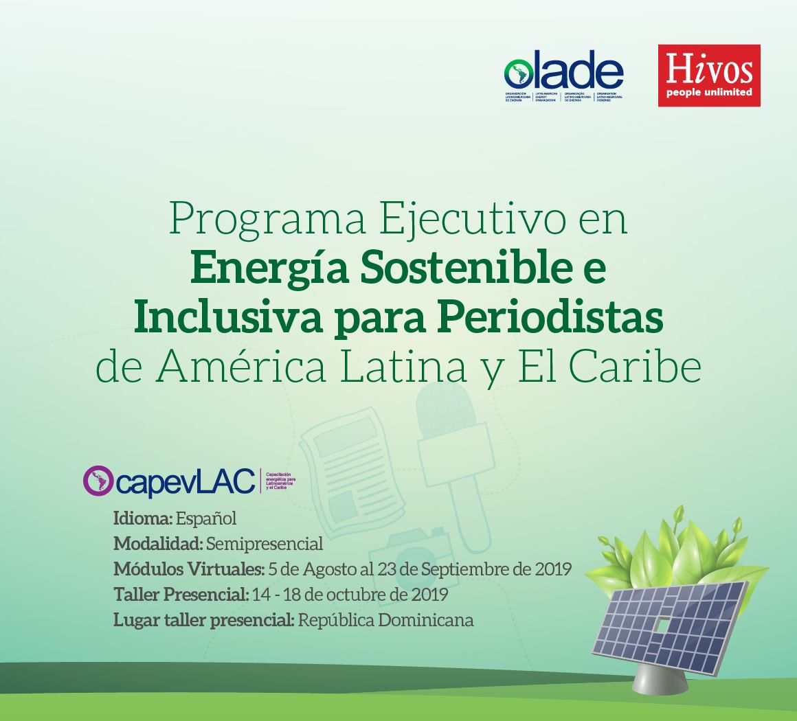 Lugar: Virtual con fase presencialHivos América Latina y OLADE invitan a periodistas latinoamericanos a aplicar al curso gratuito sobre energía sostenible e inclusiva. La...