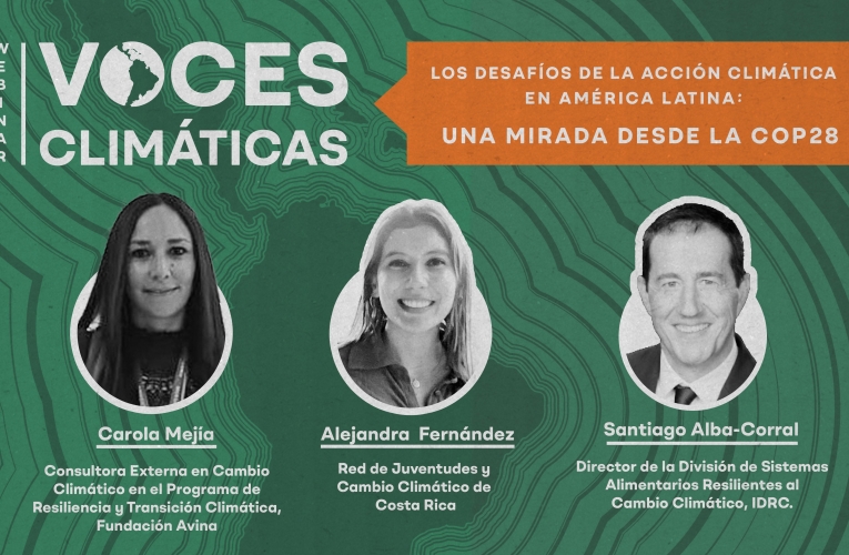 El webinar Los desafíos de la acción climática en América Latina se enmarca en la iniciativa Voces climáticas, que llevan a cabo el International Development Research Centre (IDRC) de Canadá, LatinClima, CDKN, Fundación Futuro Latinoamericano (FFLA), Claves21 y el Centro Científico Tropical (CCT), con el objetivo de difundir a distintas audiencias el impacto del conocimiento científico para lograr cambios y soluciones en el marco de la acción climática en América Latina y el Caribe, así como dar voz a quienes han logrado un cambio en sus vidas y comunidades gracias a ese conocimiento, a partir de las iniciativas apoyadas por IDRC en la región.